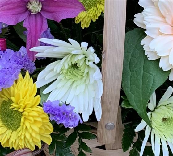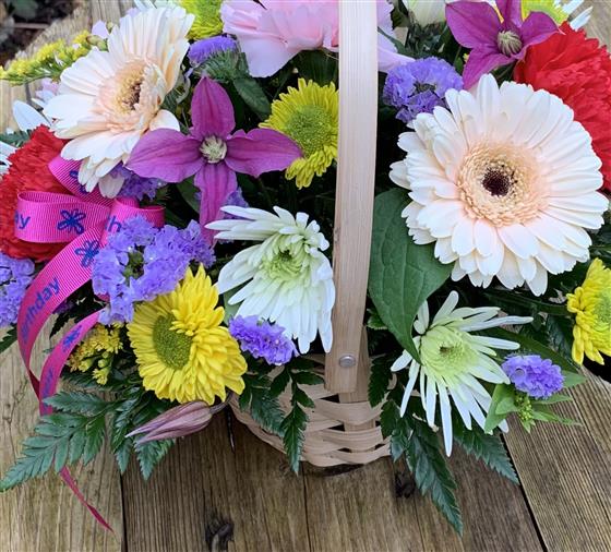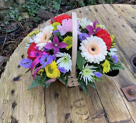 This basket can be made in different colours - please place a note on your order if you wish to request specific colours otherwise our highly skilled florists will make a stunning basket using the freshest blooms in store.
