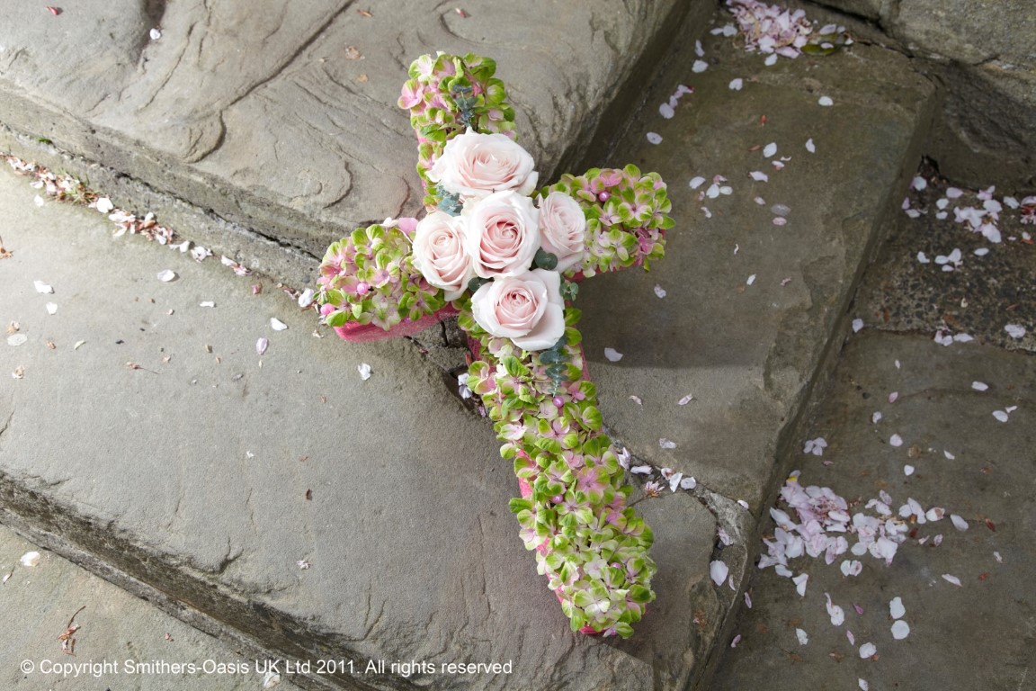 A beautifully feminine cross in pale pink.