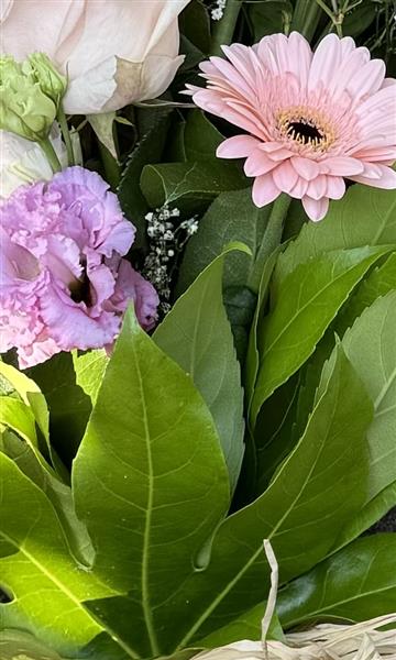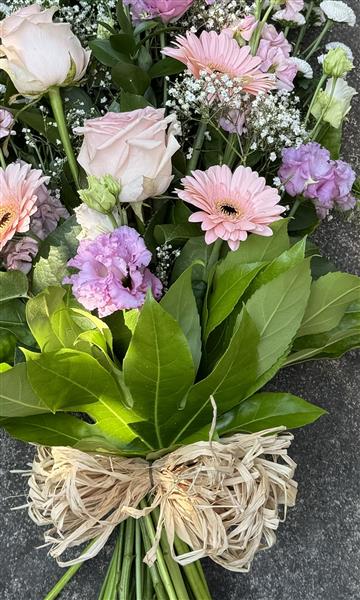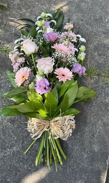 A lovely tied sheaf in soft pastel shades using the freshest seasonal blooms available.