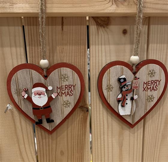 Wooden Hanging Merry Christmas - Snowman (Heart)